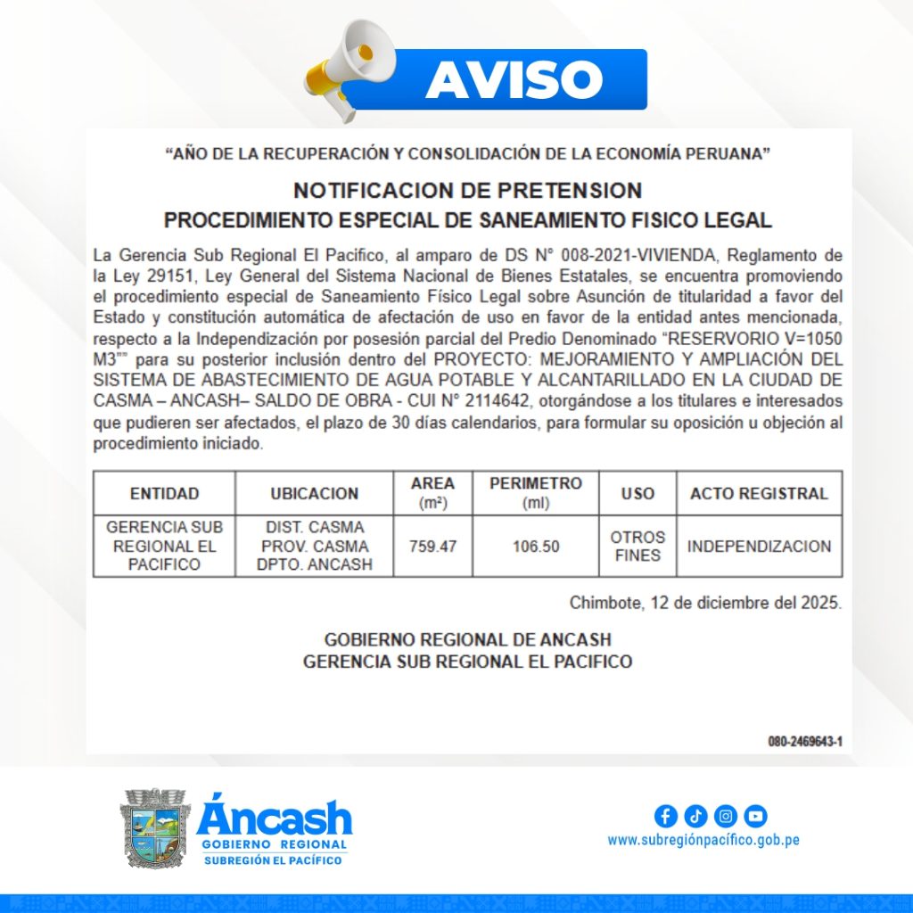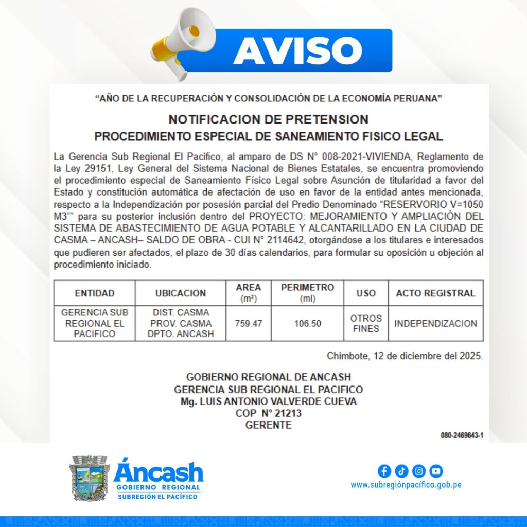 IMG_9469.JPGIMG_9469.JPG Más información Más Información Más información Más información Más información últimas Noticias REVISAN AVANCES TÉCNICOS DEL MÓDULO CIVIL DE LITIGACIÓN ORAL TAUCA: SUBREGIÓN EL PACÍFICO REACTIVA OBRA DE COLEGIO PARALIZADO DESDE 2018 PARIACOTO INICIA SU CAMINO A LA MODERNIDAD Servicios SlideSlideVideos 7 de febrero de 2026 Pariacoto inicia la elaboración del expediente técnico de pistas y veredas Subregión El Pacífico evalúa infraestructura del IESTP Casma tras 40 años sin renovación 🔵🟡EFICIENCIA QUE TRANSFORMA ÁNCASH COMPROMISO QUE TRANSFORMA: ¡FELIZ NAVIDAD!🎄 Load morePUBLICACIONES Y NOTICIAS PUBLICACIONES SlideSlideNOTICIAS REVISAN AVANCES TÉCNICOS DEL MÓDULO CIVIL… admin Feb 17, 2026 1 min readEl Gobierno Regional de Áncash, mediante la Gerencia Subregional El Pacífico, sostuvo una reunión de trabajo con la Corte Superior…TAUCA: SUBREGIÓN EL PACÍFICO REACTIVA OBRA… admin Feb 17, 2026PARIACOTO INICIA SU CAMINO A LA… admin Feb 17, 2026Eventos Próximos eventos Aviso No hay eventos programados. Mostrar Todos los Eventos